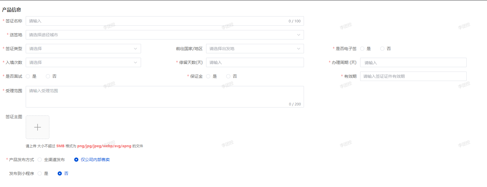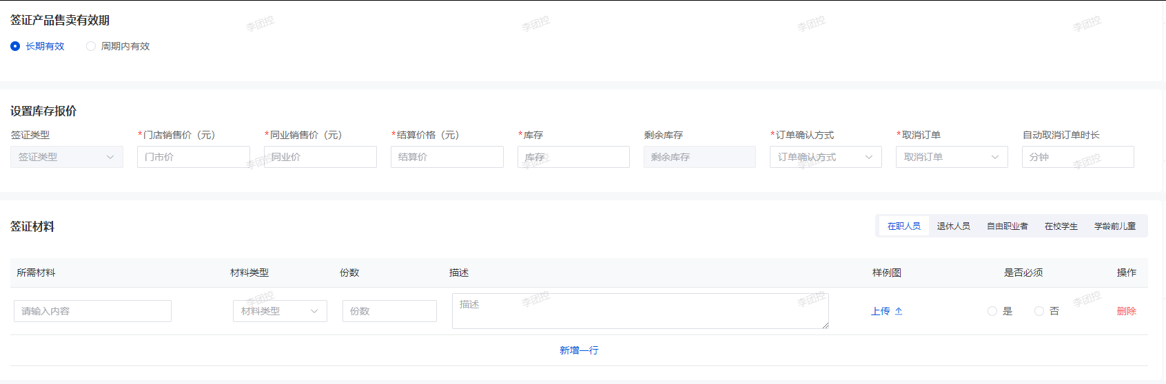 签证产品售卖有效期:分长期和周期有效两个类型,周期有效则需要设置产品售卖截止日期时间;