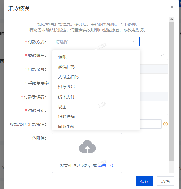 注:水单上传,非必选项,可以设置是否必须上传水单;