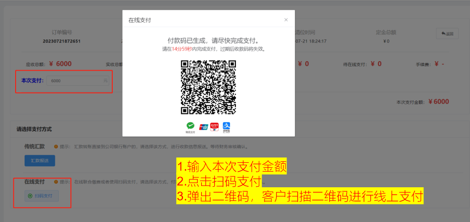 订单支付收款操作页面支持多种支付方式交易渠道;